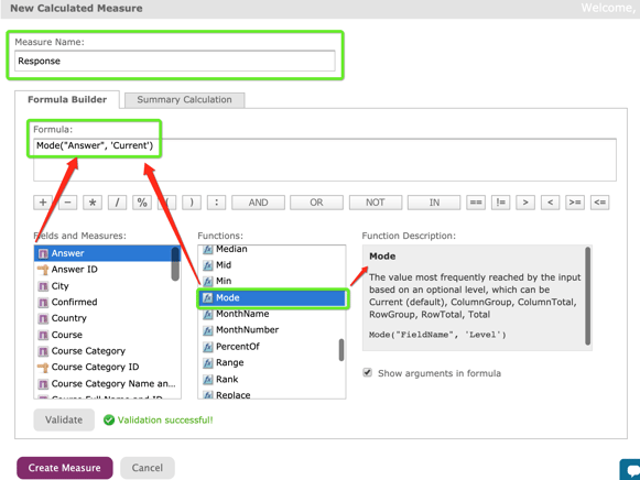 - Add Course, Feedback name, and User (or User ID) to Rows and Question name to Columns