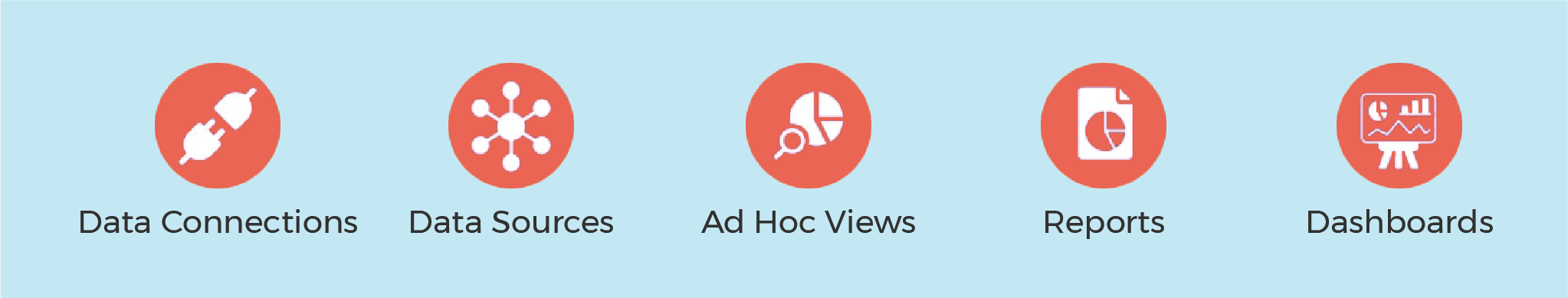 This level is the connection between Lambda Analytics and the eLearning database. Data sources are created from the data connection.