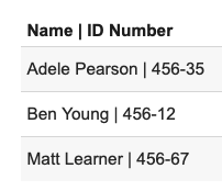 Here we've used the Name | ID Number concatenation for a cleaner look: